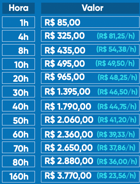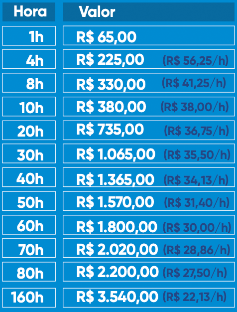 Planos a partir de R$ 21,00 a hora. Confira!